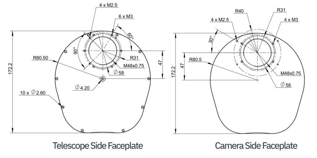 - ZWO, QHY, ToupTek, Player One, OGMA, and any other camera that shares these screw design parameters (R29/R31/58mm/62mm)
