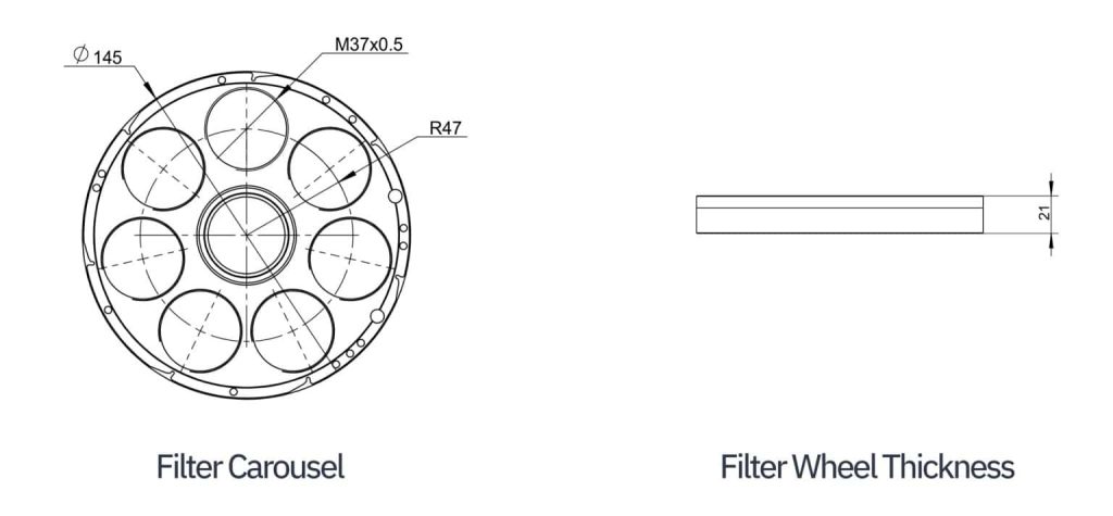 - Ultra-slim profile — Only 21mm thick with fully internal motor — it’s the world’s first completely FLAT filter wheel.
